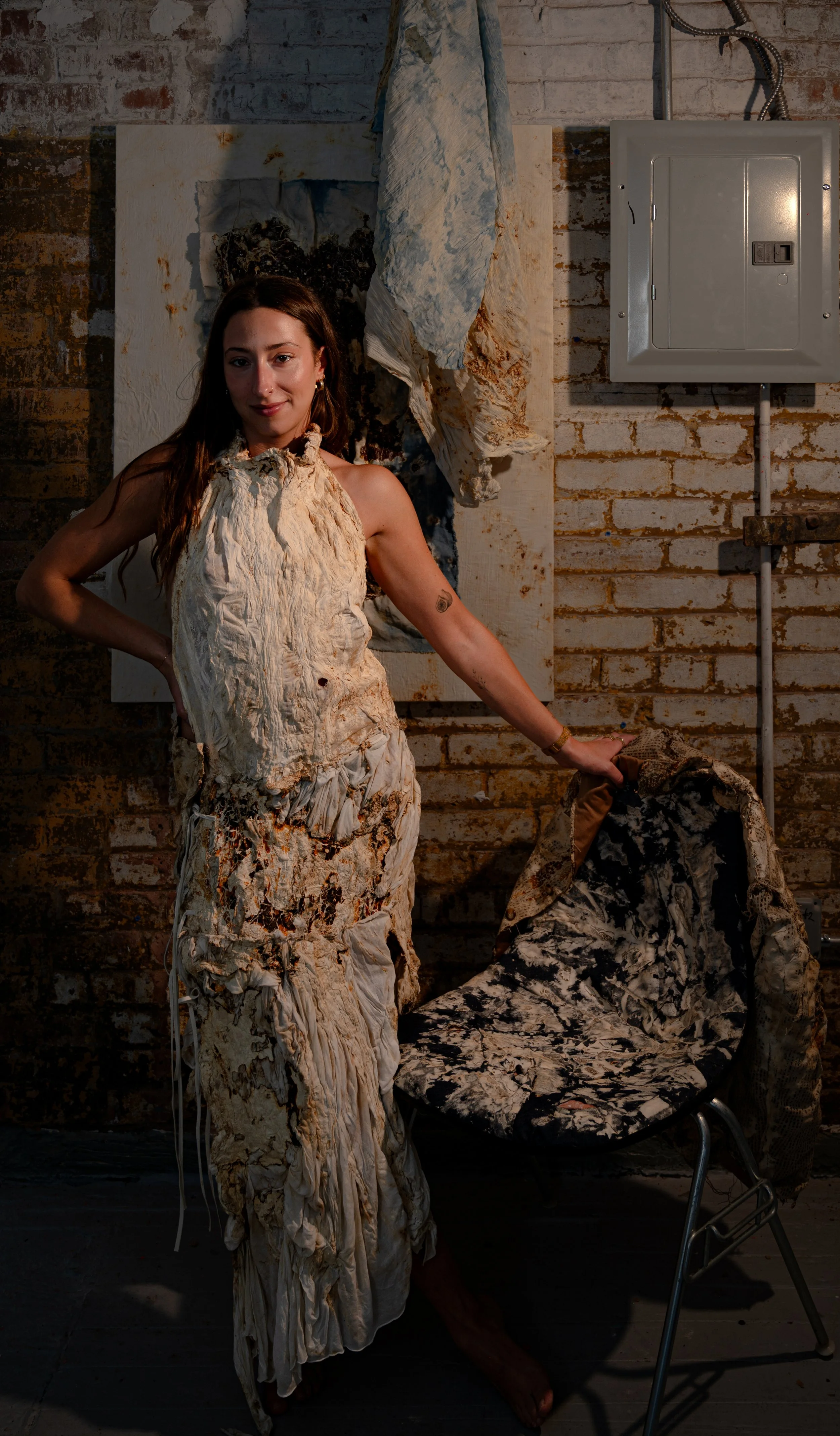 Now based in New York City, the studio creates garments and accessories using only deadstock and textile waste… no new materials. By combining these with mycelium, each piece becomes part of a circular process that challenges fast fashion and supports ecological regeneration.